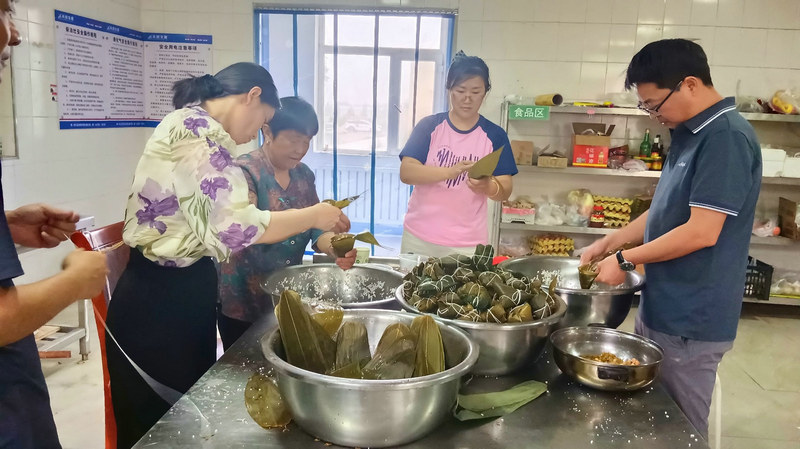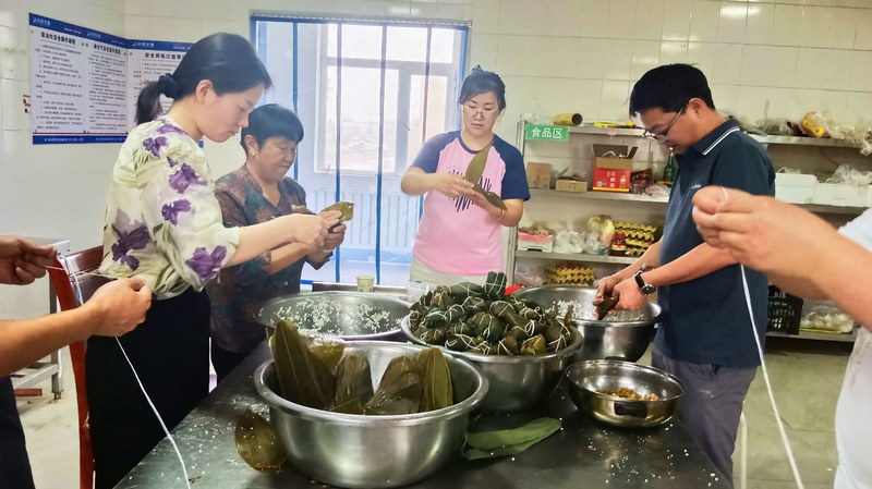 隨后, 有“包粽能手”對每個步驟進(jìn)行現(xiàn)場講解——捋粽葉、做漏斗、填糯米、壓緊實(shí)、封口、扎捆,根據(jù)講解分工協(xié)作,一片片粽葉在他們的手中上下翻飛、彎曲折疊,不一會兒功夫,一只漂亮粽子瞬間成型。“我們包的不僅僅是粽子,還把快樂、幸福、安康一同包進(jìn)這香香糯糯的粽子里。”參與包粽子的干部職工紛紛表現(xiàn)出了對傳統(tǒng)文化的理解認(rèn)識和對當(dāng)下幸福生活的喜悅。