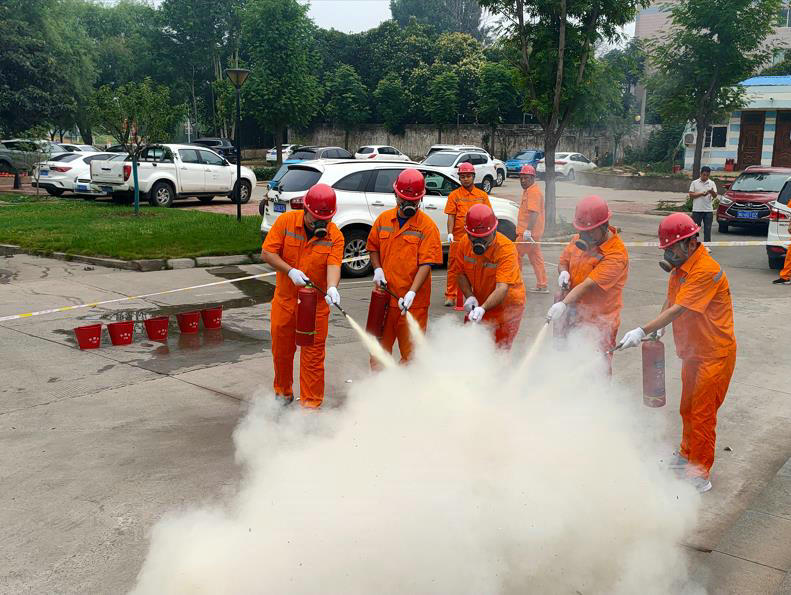 “請大家捂住口鼻,迅速撤離現(xiàn)場……”活動當天上午9時許,模擬演練在一聲尖銳的警報聲中正式拉開序幕,伴隨著濃煙升起,該項目立即啟動消防應急預案。通知人員撤離至安全區(qū)域,并安排各應急救援小組赴現(xiàn)場搶險施救。在各應急救援小組的默契配合下,火源很快被撲滅,順利完成演練的所有內容。隨后,該項目組織職工在空曠區(qū)域依次進行滅火器材的規(guī)范操作演示及滅火練習。