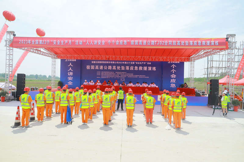 宿州訊(通訊員 孫夢凱)六月的宿州,風(fēng)吹麥浪,金光淹漾。6月21日上午,安徽宿固高速公司在宿固高速項目TJ02合同段新汴河特大橋右幅18#墩施工現(xiàn)場組織開展“人人講安全,個個會應(yīng)急”為主題的高空墜落事故應(yīng)急救援演練,以練促效,進一步提升項目應(yīng)急處置能力,強化全員安全防范意識。