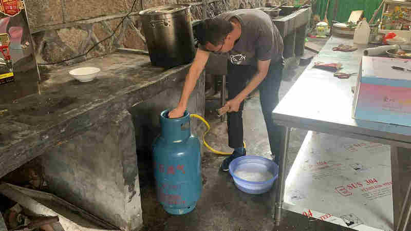 檢查中,安全管理人員對液化氣合格證、液化氣閥門及軟管密封情況、存放位置、燃?xì)庠钤ぷ髑闆r、消防設(shè)施工作情況和消防應(yīng)急物資存放情況進(jìn)行全面細(xì)致排查。對發(fā)現(xiàn)的隱患立即落實(shí)責(zé)任、時(shí)限和整改措施,對廚師、綜合辦人員進(jìn)行燃?xì)獍踩逃?,?nèi)容包括液化氣日常使用、存放、燃?xì)馐鹿蕬?yīng)急處置措施和夏季食品安全等。