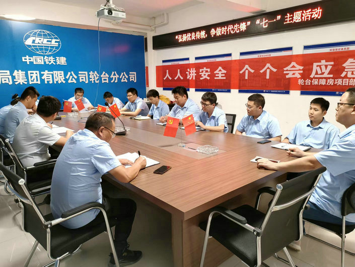 為慶祝中國共產黨建黨102周年,中鐵二十一局輪臺保障房項目黨支部于6月28日開展了慶“七一”主題活動,全體黨員通過聽黨課、面對面座談、中共黨史知識搶答競賽、重溫入黨誓詞等活動,進一步堅定理想信念,增強干事激情,為早日完成項目建設任務凝聚強大動力。