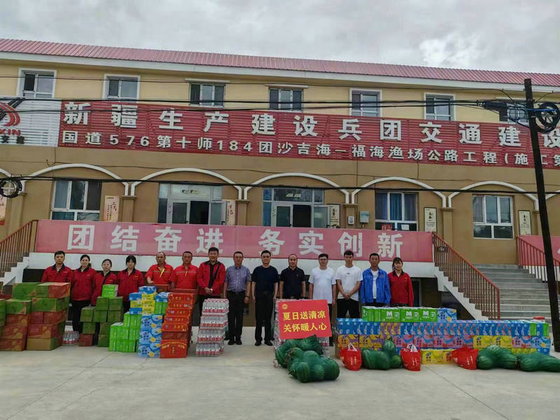 福海訊(通訊員 朱雨可 馬冬玲) 驕陽似火,酷暑難當(dāng)。為做好高溫天氣作業(yè)勞動(dòng)保護(hù)工作,切實(shí)維護(hù)廣大職工勞動(dòng)和生命健康權(quán)益,7月5日下午,十師師黨委委托十師交通運(yùn)輸局副局長(zhǎng)張寧、交通運(yùn)輸綜合行政執(zhí)法支隊(duì)隊(duì)長(zhǎng)高軍一行赴兵團(tuán)交建國(guó)道576項(xiàng)目開展“夏日送清涼,關(guān)懷暖人心”慰問活動(dòng),為奮戰(zhàn)在項(xiàng)目一線的職工送去絲絲涼意。