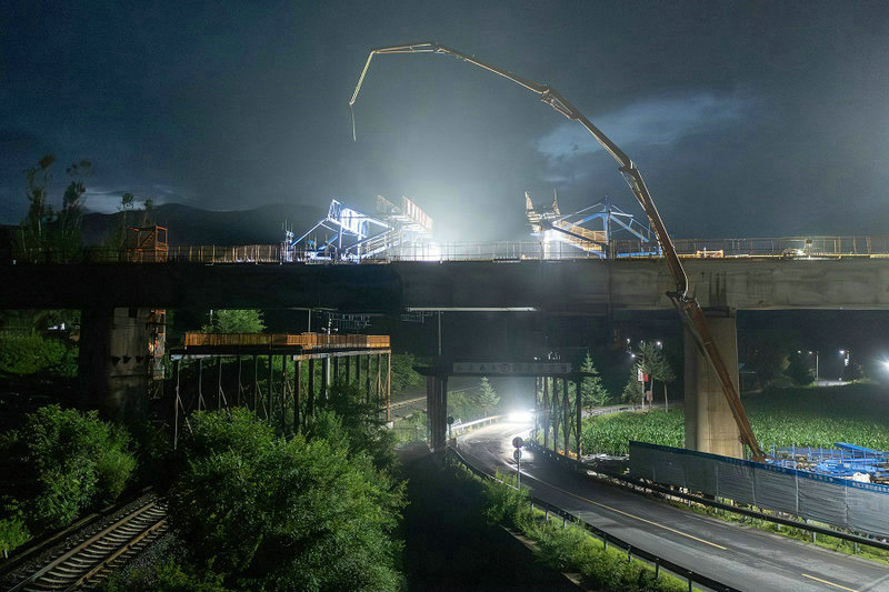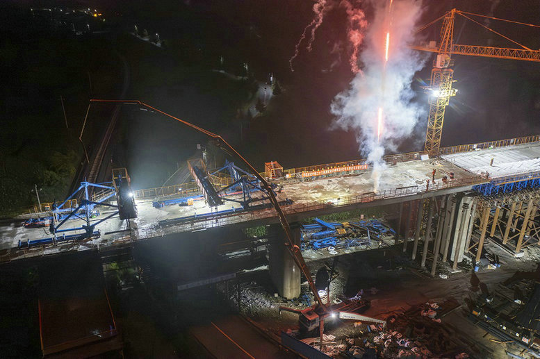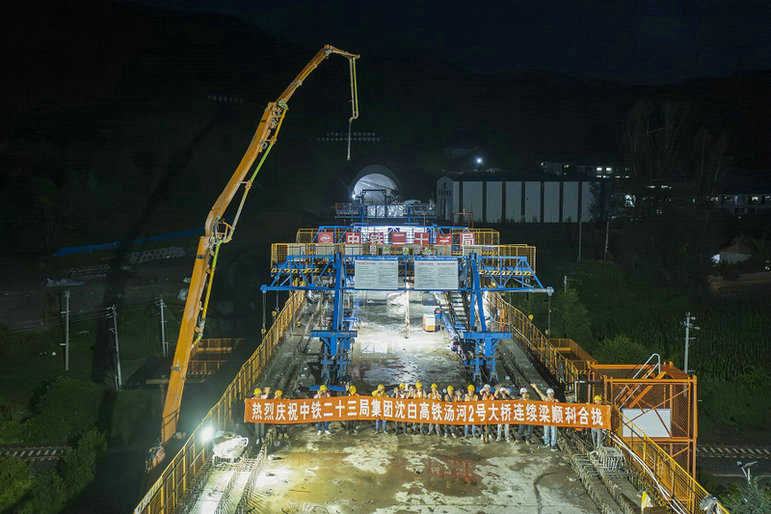 7月10日凌晨1時28分,伴隨著喜慶的鞭炮聲,最后22立方米混凝土澆筑完成。由中鐵二十三局集團承建的沈白高鐵吉林段TJ-6標湯河2號大橋32+48+32米連續(xù)梁跨越渾白鐵路順利合龍,成功完成“空中握手”,標志著管內(nèi)橋梁施工取得新突破。