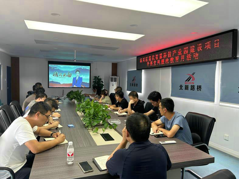 為進(jìn)一步增強(qiáng)項(xiàng)目黨員干部職工廉潔從業(yè)意識(shí),營(yíng)造風(fēng)清氣正的工作氛圍。7月9日,北新路橋集團(tuán)西安分公司南川區(qū)現(xiàn)代智慧科技產(chǎn)業(yè)園建設(shè)項(xiàng)目開(kāi)展第二十五個(gè)黨風(fēng)廉政教育月活動(dòng)。