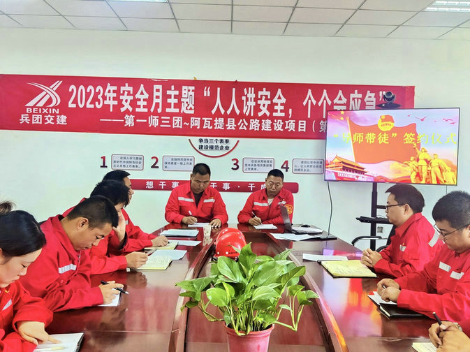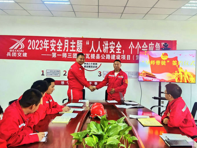 為幫助新進(jìn)員工適應(yīng)崗位,融入工作,盡早成長為企業(yè)發(fā)展的骨干人才,7月14日,兵團(tuán)交建第一師三團(tuán)-阿瓦提縣公路項(xiàng)目第一合同段開展了“傳承匠心 攜手共進(jìn)”導(dǎo)師帶徒簽訂儀式,3名青年職工與各自的導(dǎo)師簽訂了《導(dǎo)師帶徒協(xié)議書》,結(jié)成“傳、幫、帶”對子。