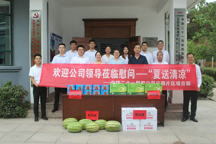 7月23日至26日,中鐵二十一局四公司副總經(jīng)理、總會計(jì)師許海英,總部財(cái)務(wù)資金部副部長一行到臨沂東部商城項(xiàng)目、羅莊經(jīng)開區(qū)高端裝備制造產(chǎn)業(yè)區(qū)道路工程項(xiàng)目、費(fèi)縣福源社區(qū)棚戶區(qū)改造項(xiàng)目、日照市東港區(qū)城市更新項(xiàng)目檢查指導(dǎo)工作并開展“夏送清涼”慰問活動。