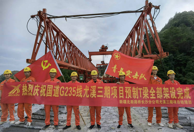 尤溪訊(通訊員 劉小波)7月20日17時(shí),北新路橋長(zhǎng)沙分公司承建的國(guó)道G235線尤溪三期項(xiàng)目(以下簡(jiǎn)稱尤溪三期項(xiàng)目)溪坂大橋最后一片30米預(yù)制T梁穩(wěn)穩(wěn)地落在橋墩上。該片T梁的成功架設(shè),標(biāo)志著該項(xiàng)目所有T梁架設(shè)任務(wù)圓滿完成,為項(xiàng)目全線貫通邁出堅(jiān)實(shí)的一步。