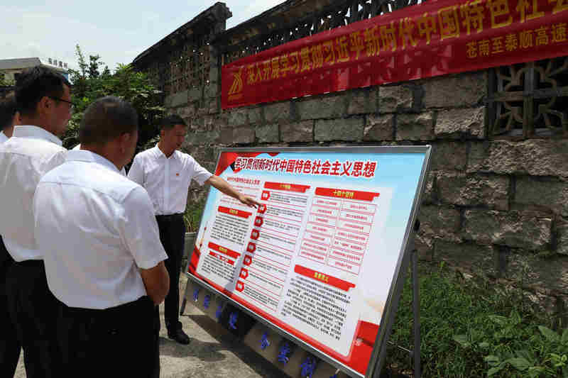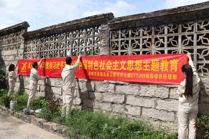 此外,該黨支部還精心制作主題教育展板、宣傳橫幅及海報等,使全體黨員在“看、學(xué)、思、悟”過程中系統(tǒng)學(xué)習(xí)了習(xí)近平新時代中國特色社會主義思想的形成過程、科學(xué)體系、實踐要求和重要意義。黨員奚太龍在看完展板后說道:“我將在今后的工作中更加嚴(yán)格要求自己,不斷創(chuàng)新工作方法,發(fā)揮先鋒模范作用,以良好的黨性修養(yǎng)和昂揚(yáng)的精神風(fēng)貌全身心投入到工作中,為將蒼泰高速公路修建成一條品質(zhì)路、共富路貢獻(xiàn)自己的力量”。