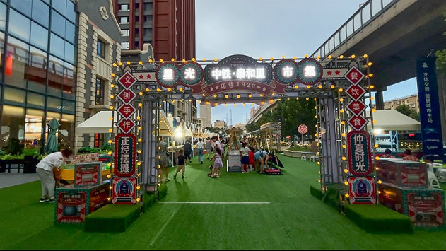 作為中鐵·泰和里的首開區(qū),印巷1923星光市集復刻了百年前的鄭州市井文化,吸引了美食、文創(chuàng)玩物等攤位入駐,配置了火車頭、黃包車、電視機等具有歷史標志的老物件,打造了復古民國風情與現(xiàn)代潮流結合的“夜經(jīng)濟”,吸引了眾多市民前來參與互動,體驗新“夜”態(tài)。