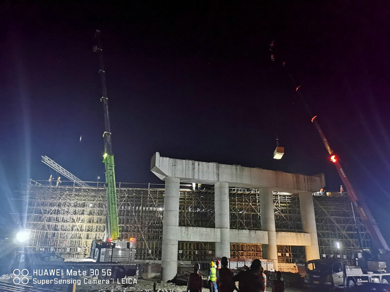 近日,項(xiàng)目部靠前指揮,掛圖作戰(zhàn),嚴(yán)把施工安全和設(shè)備質(zhì)量關(guān),認(rèn)真落實(shí)“一施工三方案”“三清點(diǎn)一確認(rèn)”,強(qiáng)化施工安全、風(fēng)險(xiǎn)防范,做好安全技術(shù)交底,確保每個(gè)施工天窗點(diǎn)的“黃金時(shí)間”能夠精準(zhǔn)利用。最終,項(xiàng)目部搶抓5個(gè)60分鐘天窗點(diǎn)時(shí)間,高效完成了棚架頂部的39榀鋼桁梁吊運(yùn)、架設(shè),及頂部912平方米的雙層防護(hù)板,鐵皮的鋪設(shè)、固定施工。