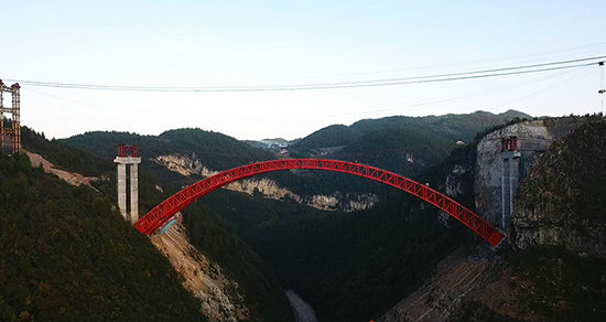 建恩高速找龍壩河特大橋拱肋勝利合龍