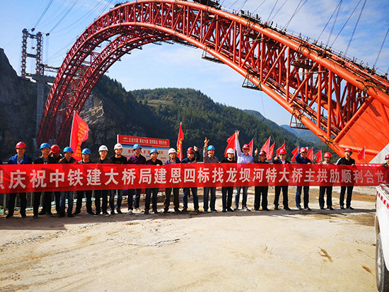 10月27日,由中國(guó)鐵建大橋工程局集團(tuán)一公司承建的建恩高速公路四標(biāo)找龍壩河特大橋拱肋順利合龍。