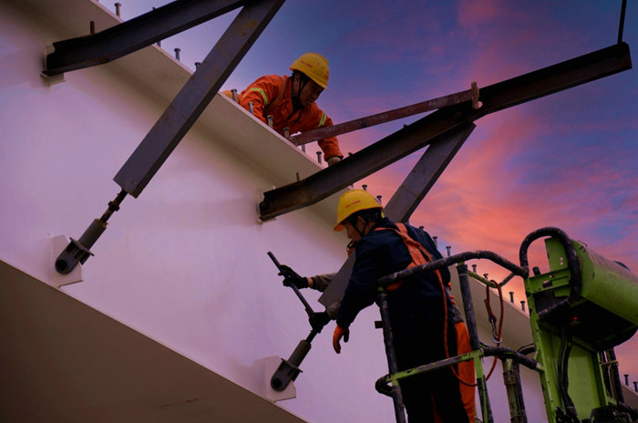 作業(yè)工人在安裝懸空支架 呂奎元攝