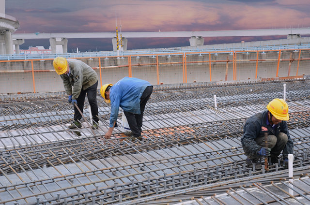 工人在震動(dòng)混凝土 呂奎元攝