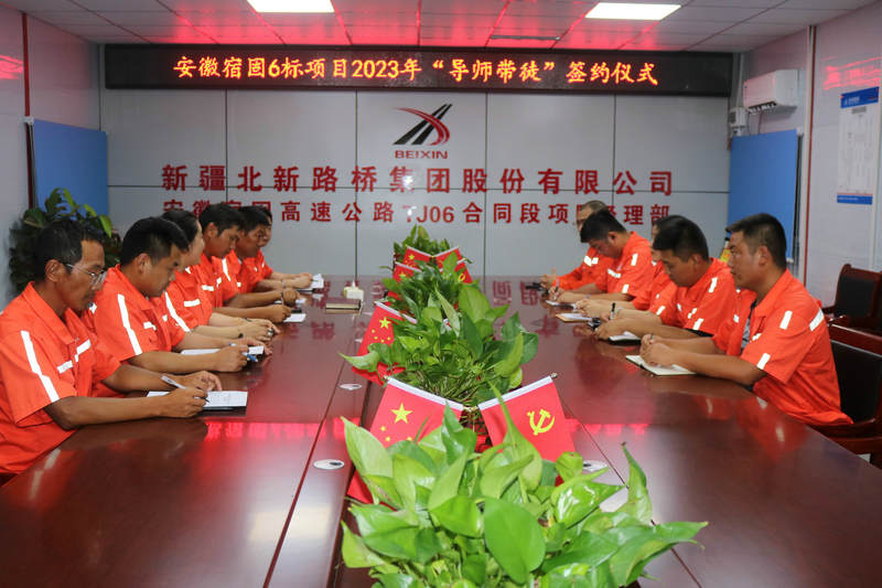 北新路橋集團長沙分公司安徽宿固6標項目舉行的“導師帶徒”活動啟動儀式暨簽約儀式。