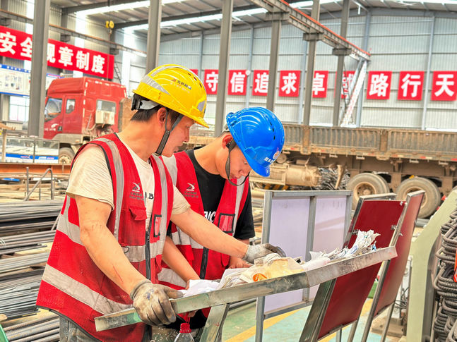 圖為:北新路橋集團長沙分公司戶口B1標項目施工員和一線工人交流研討 盧仕磊 攝