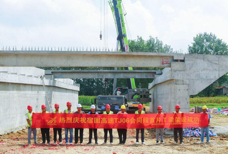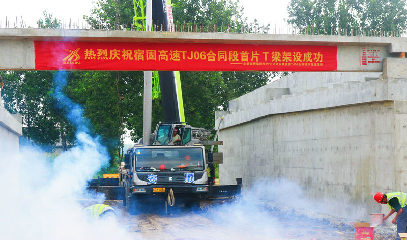 “為確保首片T梁成功架設(shè),項(xiàng)目部多次召開(kāi)專題會(huì)議,針對(duì)運(yùn)梁通道地形復(fù)雜、架梁位置坡度陡、安全風(fēng)險(xiǎn)高等問(wèn)題制定專項(xiàng)施工方案,明確施工任務(wù),開(kāi)展技術(shù)交底組織技術(shù)人員對(duì)架橋機(jī)、運(yùn)梁車(chē)進(jìn)行驗(yàn)收排查各項(xiàng)安全隱患。首片T梁的成功架設(shè),為宿固6標(biāo)24座橋梁架梁施工吹響號(hào)角,也為后續(xù)T梁架設(shè)提供了寶貴經(jīng)驗(yàn)。”該項(xiàng)目負(fù)責(zé)人洪康說(shuō)。