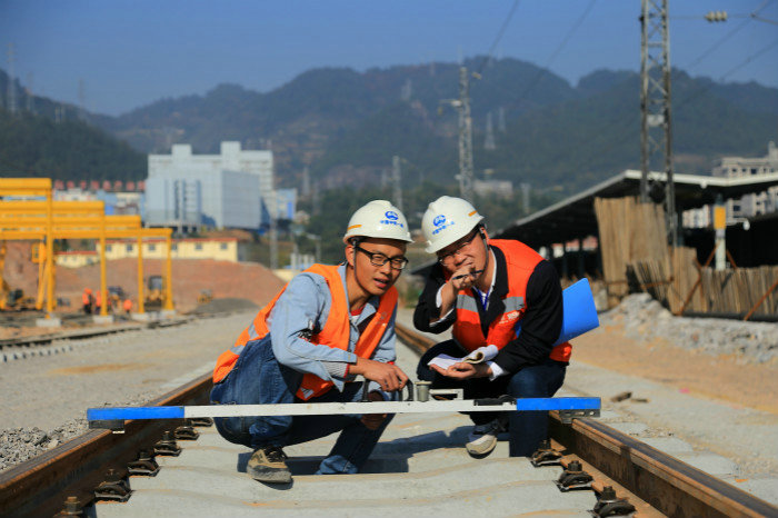 (李艷春 譚帥)“咱們工程技術(shù)人員是手握標(biāo)準(zhǔn)的人,要想讓測(cè)量出的數(shù)據(jù)精準(zhǔn),就要對(duì)線路的幾何尺寸吃熟摸透,尤其是線路壓道前后的數(shù)據(jù)變化......”,11月4日,中鐵一局新運(yùn)涪秀二線項(xiàng)目的鋪架基地里,技術(shù)員徐磊剛剛結(jié)束了一項(xiàng)在建道床的測(cè)量任務(wù),間歇時(shí)間里,項(xiàng)目副總監(jiān)劉萬(wàn)權(quán)為他送去了精心調(diào)配的“美味菜肴”。