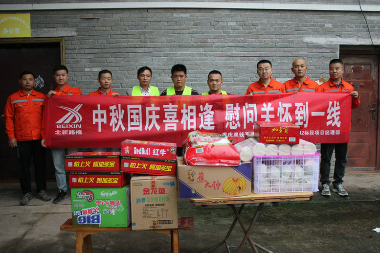 中秋、國慶佳節(jié)將至,為讓堅(jiān)守在施工現(xiàn)場(chǎng)的一線工友們度過一個(gè)幸福溫馨的中秋佳節(jié),在工地上也能夠感受到“家”的溫暖。9月27日,雙錢高速土建二標(biāo)項(xiàng)目部開展“”慰問活動(dòng),為他們送上節(jié)日的問候及慰問品。