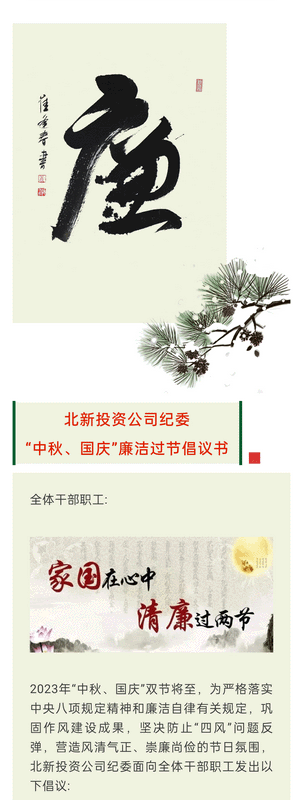 北新投資公司紀(jì)委│“中秋、國(guó)慶”廉潔過(guò)節(jié)倡議書(shū)
