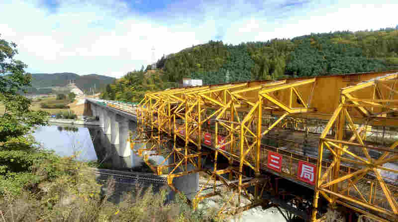 該橋先后跨越渾白鐵路、縣道X096及雙河三級電站庫區(qū)。其中1號橋墩坐落于山坡上,下方為X096縣道,2-3號橋墩之間跨越既有渾白鐵路,3-7號橋墩處于雙河三級電站庫區(qū)的涉水區(qū)。面對工期緊迫、地質(zhì)條件差、施工環(huán)境復(fù)雜、安全風(fēng)險高等不利因素,中鐵二十三局集團(tuán)沈白高鐵項目部,不斷優(yōu)化施工組織方案,加大人財物等資源投入力度,以保質(zhì)量、保安全、保進(jìn)度為重中之重,集中力量、統(tǒng)籌資源、全力以赴搶進(jìn)度。先后采取水中筑島、改移河道、專人防護(hù)等具體措施,嚴(yán)把跨越鐵路、公路、庫區(qū)作業(yè)安全關(guān),嚴(yán)格執(zhí)行作業(yè)標(biāo)準(zhǔn)和有關(guān)質(zhì)量卡死卡嚴(yán)制度,各專業(yè)施工齊頭并進(jìn)推進(jìn)有力,確保了節(jié)點工期目標(biāo)的實現(xiàn),為大橋下步的橋面系和無砟軌道板施工開辟了綠色通道。