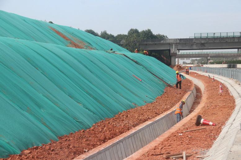 圖為:北新路橋集團(tuán)長沙分公司滬昆B1標(biāo)項(xiàng)目邊坡施工照片 代光宗 攝