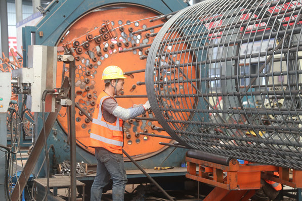 圖為:北新路橋集團(tuán)長(zhǎng)沙分公司滬昆B1標(biāo)項(xiàng)目鋼筋籠制作 代光宗 攝