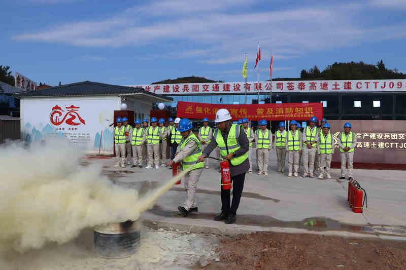 今年11月9日是第32個全國消防日。為切實推動消防安全宣傳落實見效夯實基礎(chǔ),提升員工消防安全意識與應(yīng)急自救能力。近日,北新路橋集團兵團交建公司蒼泰9標(biāo)項目(以下簡稱蒼泰9標(biāo))組織開展“預(yù)防為主,生命至上”消防安全知識培訓(xùn)暨火災(zāi)應(yīng)急演練活動。