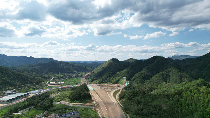 2022年的10月,通山丹桂千里飄香,無人機(jī)鏡頭下的咸九高速,荒山開通途,溝渠建涵洞,擋涵護(hù)坡用鋼筋水泥素裹,橋梁路基縱橫交錯(cuò),初步形成了道道脈絡(luò)。