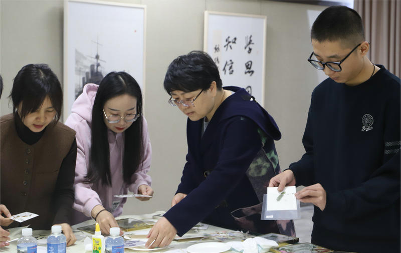 金色的邊框,透明的背景板,粉紫色的干花,紅黃綠的葉片……員工和家屬們運(yùn)用手中的貼紙、干花配件盡情創(chuàng)作,讓心中的幸福躍然紙上,一起DIY制作著獨(dú)一無二且充滿家庭回憶紀(jì)念相框。參與活動的職工張軍,用鑷子一點(diǎn)點(diǎn)將各式各樣的素材裝飾在兩個(gè)兒子照片的周圍,期許制作這份禮物希望兄弟倆相親相愛,健康長大。