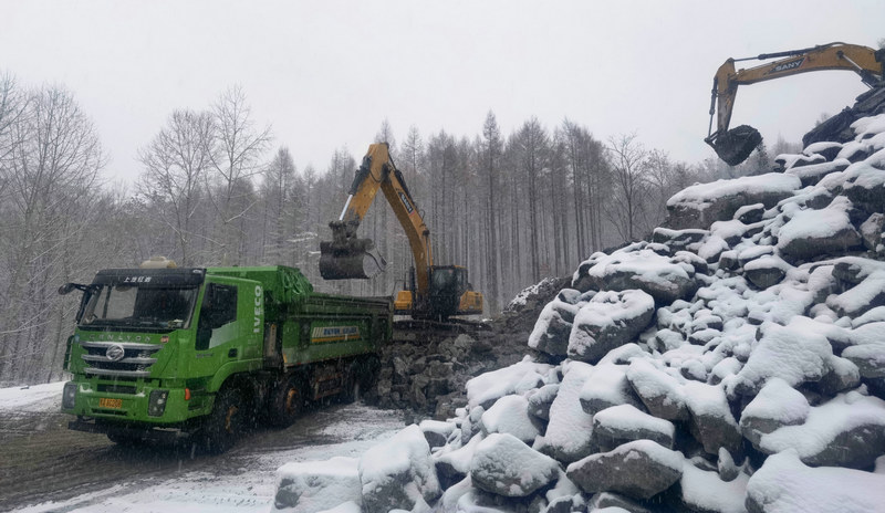 為了應(yīng)對長白山腹地暴雪、冰凍、寒流等極端天氣頻發(fā)狀況,項目部提前對路窄、坡陡、彎急道路的錯車平臺進行了修繕加固。3支清雪突擊隊嚴陣以待,做到了隨下隨清,保證車輛運輸?shù)陌踩珪惩?。目前項目已儲備冬施需要的中?.7萬立方米、巖棉保溫被13600平方米、防滑爐灰3000立方米、融雪劑176噸等物資,冬施期間物料儲量充足。