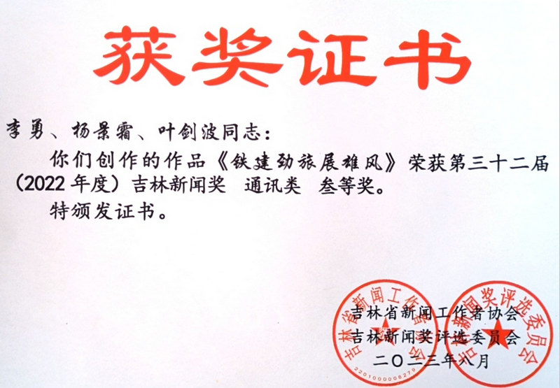 《鐵建勁旅展雄風(fēng)》喜獲吉林省新聞獎