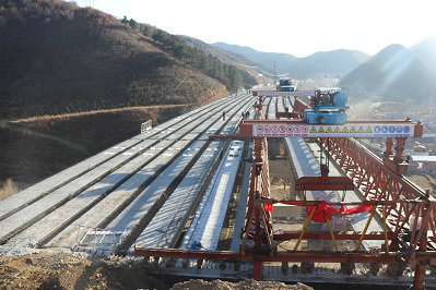 頭炮二號(hào)大橋位于河北省張家口市赤城縣頭炮村,大橋全長(zhǎng)277米,9跨共計(jì)108片預(yù)制T梁。該地區(qū)臨近頭炮村又是路基和涵洞施工交叉點(diǎn),對(duì)現(xiàn)場(chǎng)施工造成了極大的不便,項(xiàng)目部認(rèn)真踐行高管局、籌建處的“綠色品質(zhì)示范工程”核心理念,統(tǒng)籌現(xiàn)場(chǎng)管理,攻堅(jiān)克難,加大安防投入,歷時(shí)兩個(gè)多月,順利完成了全部預(yù)制T梁架設(shè)。兩座大橋架梁過(guò)程中,項(xiàng)目部嚴(yán)格按施工規(guī)范,根據(jù)工期節(jié)點(diǎn)和現(xiàn)場(chǎng)實(shí)際情況,制定詳細(xì)施工計(jì)劃,同時(shí)配合監(jiān)理單位嚴(yán)控質(zhì)量,死保安全,搶趕進(jìn)度、科學(xué)組織,多措并舉。對(duì)施工中存在的問(wèn)題及時(shí)糾偏。當(dāng)天下午,ZD1副駐地楊永民到達(dá)架梁現(xiàn)場(chǎng),對(duì)頭炮2號(hào)大橋橋梁支座等進(jìn)行檢查。檢查過(guò)后,他對(duì)于項(xiàng)目部現(xiàn)在取得的成績(jī)表示肯定。目前延崇高速建設(shè)已經(jīng)進(jìn)入重要節(jié)點(diǎn),他希望項(xiàng)目部再接再厲,立足安全生產(chǎn),把控現(xiàn)場(chǎng)生產(chǎn)規(guī)范,牢固安全紅線意識(shí),繼續(xù)搶趕進(jìn)度,為河北高速建設(shè)繼續(xù)做出貢獻(xiàn)。