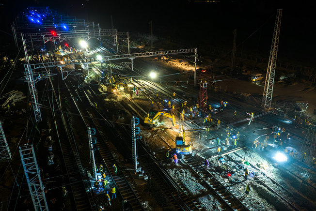自去年12月進(jìn)場以來,中鐵二十一局全體參建人員積極應(yīng)對營業(yè)線施工安全壓力大、工期緊迫、任務(wù)繁重、環(huán)境惡劣等不利因素,大力開展“保安全 鑄精品 促發(fā)展”勞動競賽,克服鄰線行車密度高、多專業(yè)交叉施工、施工組織復(fù)雜、地處風(fēng)區(qū)大風(fēng)干擾多等重重困難,并利用600多次“封閉點(diǎn)”天窗作業(yè),攻克了精河站、博樂東站新聯(lián)鎖開通等重點(diǎn)控制性工程,于今年7月13日開始正線鋪軌,10月24日開始第一區(qū)間靜態(tài)驗(yàn)收,11月16日博樂東至阿拉山口段區(qū)間順利開通,用9個(gè)月完成了施工任務(wù),線路各項(xiàng)參數(shù)符合國鐵Ⅰ級鐵路行車標(biāo)準(zhǔn),達(dá)到了交付運(yùn)營條件。