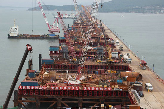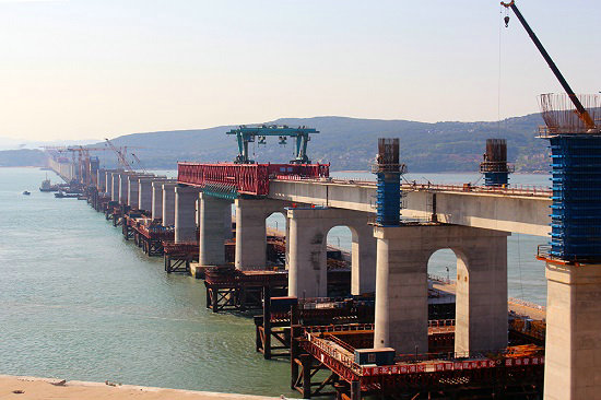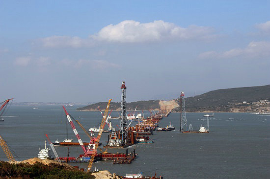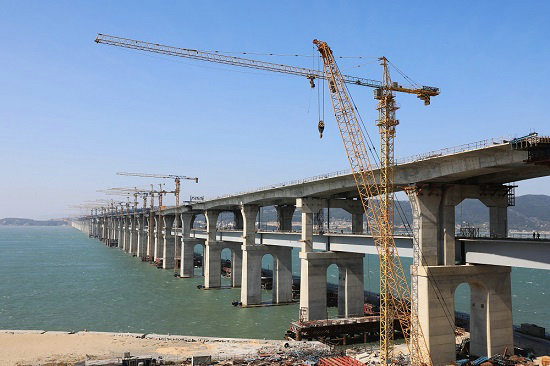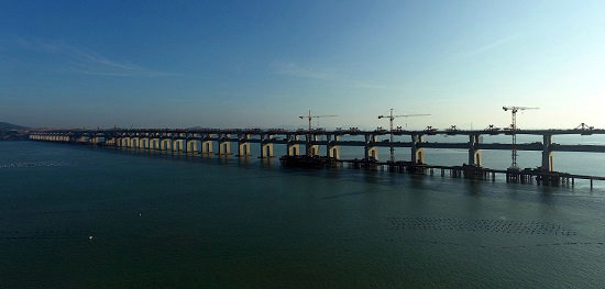 歷經(jīng)五年艱苦卓絕的努力拼搏,中鐵建大橋工程局集團(tuán)一公司福平鐵路平潭海峽公鐵兩用大橋攻克了道道難關(guān)險(xiǎn)阻,解決了施工中遇到的所有難題,大橋在湛藍(lán)的大海上節(jié)節(jié)拔起,飛躍海峽,氣勢(shì)磅礴,已完成鐵路梁合龍,向公路梁合龍沖刺。