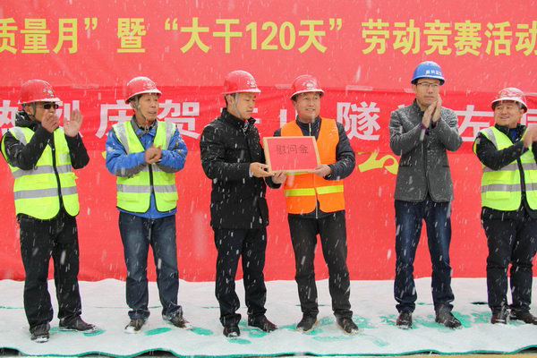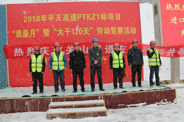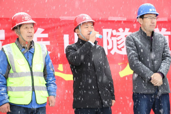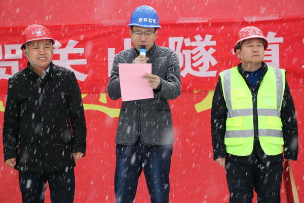 冒著大雪舉行進(jìn)口左線與斜井貫通儀式