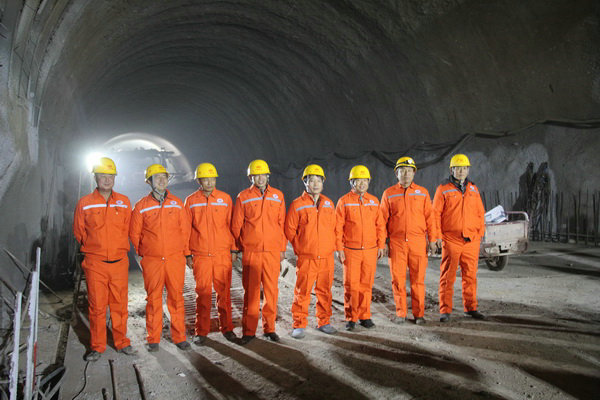 項(xiàng)目部領(lǐng)導(dǎo)在貫通點(diǎn)合影??????? 平天高速PTKZ1標(biāo)項(xiàng)目部為攻克隧道施工難關(guān),在強(qiáng)化組織管理,優(yōu)配施工資源,著力現(xiàn)場(chǎng)安全質(zhì)量管控的同時(shí),大力開展技術(shù)創(chuàng)新,在施工中采用了一系列新技術(shù)、新工藝、新設(shè)備。如采用大管棚配合三臺(tái)階七步法順利下穿304省道,推廣應(yīng)用爆破專家何廣沂教授研發(fā)的“新型聚能水壓光面爆破新技術(shù)”;另外邀請(qǐng)公司“創(chuàng)新專家”馬小利成功研發(fā)“小導(dǎo)管縮尖機(jī)”、引進(jìn)防水板自動(dòng)鋪設(shè)臺(tái)車、霧炮養(yǎng)生機(jī)、自行式液壓仰拱棧橋、單臂鑿巖臺(tái)車、單臂濕噴機(jī)等先進(jìn)設(shè)備,克服地質(zhì)復(fù)雜、極端天氣影響、地材短缺等困難,科學(xué)組織,精心施工,為創(chuàng)建平安工地,打造品質(zhì)工程發(fā)揮了重要作用。