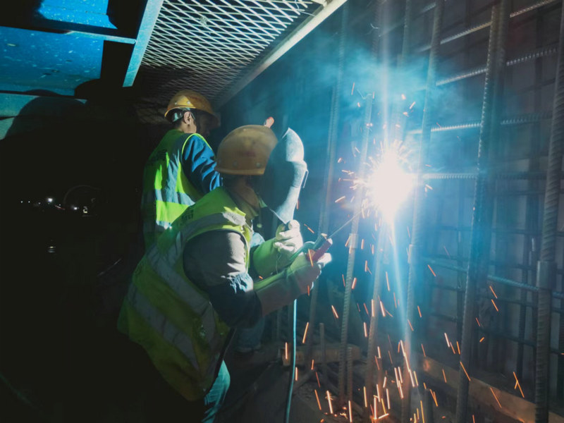 在中梁山隧道二、三工區(qū)深隧內(nèi),燈光焊花交織在一起,機(jī)器聲號(hào)子聲匯集在一起,各道施工工序銜接有序,一派熱火朝天的施工景象。隧道外低溫離不開棉衣,隧道內(nèi)潮濕悶熱汗流浹背,員工們有的綁扎鋼筋、有的操控設(shè)備,各道工序有條不紊地加緊施工。截止目前,中梁山隧道進(jìn)口大小里程正線掘進(jìn)1933米、中梁山出口大小里程正線掘進(jìn)1023米。