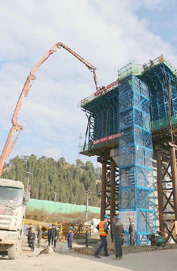 麗香鐵路獨古當大橋懸灌梁施工現(xiàn)場