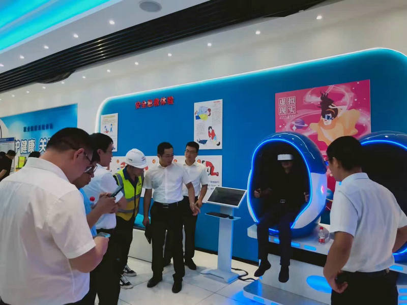項(xiàng)目經(jīng)理阮超陪同國(guó)家住建部信息中心米文忠處長(zhǎng)一行到中梁山隧道進(jìn)口調(diào)研期間、在智慧信息化中新VR模擬常見各類安全生產(chǎn)事故感官體驗(yàn)