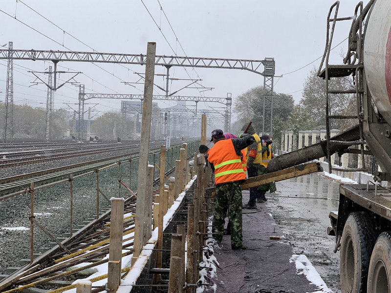 “困難時(shí)候,才是考驗(yàn)我們管理水平的時(shí)候。沒(méi)什么能擋住我們施工的正常進(jìn)行。”這是參建職工經(jīng)常說(shuō)的話。通透的站臺(tái)上,肆虐的西北風(fēng)不斷將雪片卷到扶梯、站臺(tái)和奮戰(zhàn)的職工身上。面對(duì)連續(xù)的風(fēng)雪,站改項(xiàng)目各項(xiàng)工作有條不紊進(jìn)行,沒(méi)出現(xiàn)一起影響工程施工的情形,更無(wú)安全、質(zhì)量問(wèn)題。工地機(jī)器轟鳴,施工現(xiàn)場(chǎng)熱火朝天,全力以赴確保圓滿(mǎn)完成施工任務(wù)。