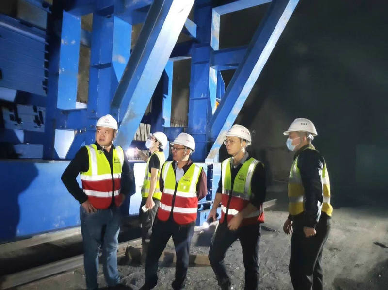 項(xiàng)目經(jīng)理阮超(左一)書記何偉(右二)帶隊(duì)中梁山隧道“夜查”