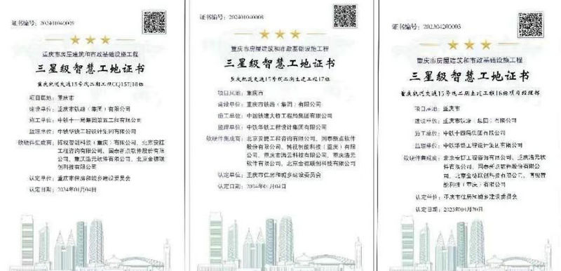 重慶軌道15號線二期總承包部所屬三個標(biāo)段榮獲“三星級智慧工地”稱號