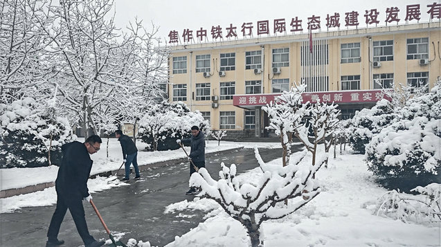 產(chǎn)品四部組織員工在中鐵太行國際生態(tài)城全力清掃道路積雪,彰顯企業(yè)責(zé)任擔(dān)當(dāng)。