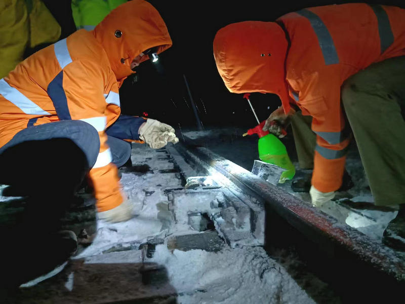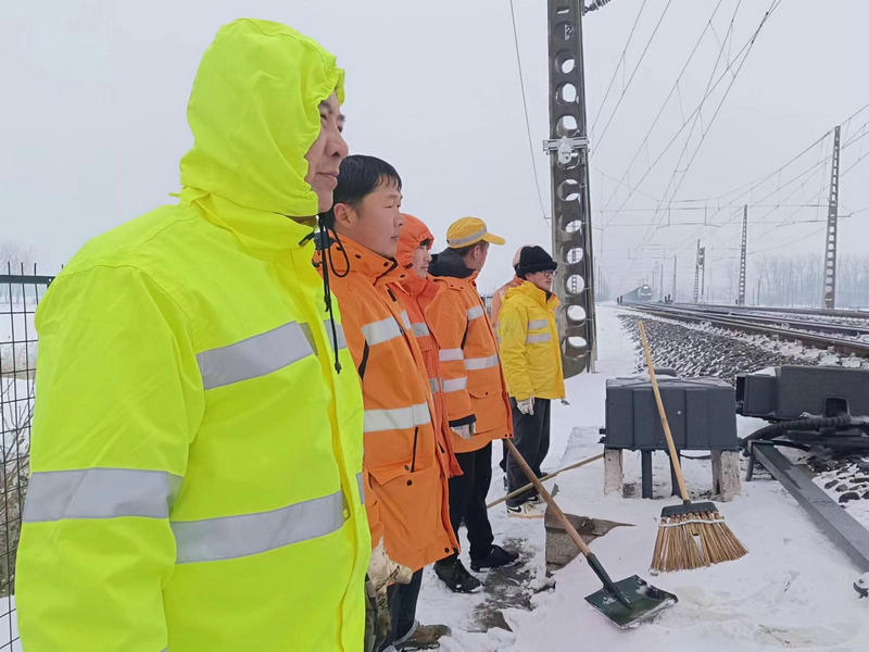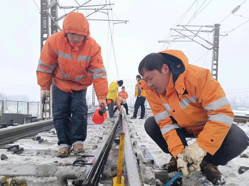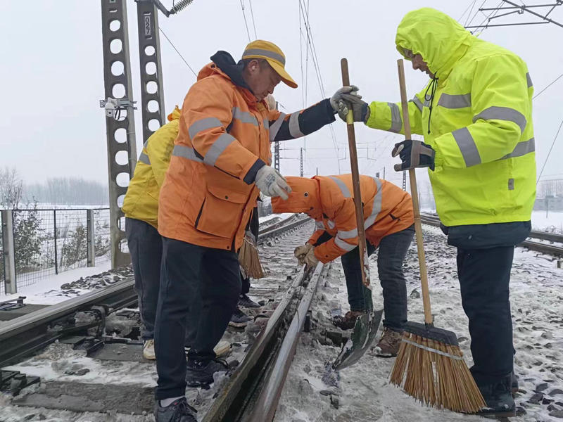 近日,皖北地區(qū)普降大雪,飄舞的雪花給大地披上了銀裝素裹的美景,也給鐵路安全暢通帶來了嚴峻的考驗。中國鐵路上海局集團有限公司合肥電務段亳州電務車間“以雪為令”,迅速啟動掃雪應急預案,組織車間全體干部職工全員在崗,準備充足的扁鏟、掃把、防凍液等防寒物品,按照掃雪預案分工深入管內各站開展進行掃雪除冰突擊奮戰(zhàn)。大家頂風冒雪,不畏嚴寒,全力以赴做好掃雪除冰,確保車間管內道岔轉換良好,確保京九線列車安全暢通運行。