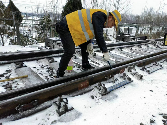 受強(qiáng)冷空氣影響,安徽西北部地區(qū)迎來一場凍雨降雪過程。阜陽工務(wù)段亳州線路車間為確保京九大動脈運(yùn)輸暢通,嚴(yán)陣以待、積極應(yīng)對,全員留宿值守,密切關(guān)注降雪情況,及時開展掃雪除冰工作。