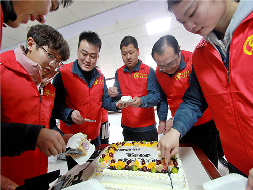 上午9時(shí)30分,主題活動(dòng)在“集體生日會(huì)”中拉開帷幕。據(jù)悉,為了給老人過集體生日,志愿者們?cè)缭绫銇淼搅斯?,提前幫忙布置場地,?zhǔn)備活動(dòng)后續(xù)所需的各種用品和道具,用實(shí)際行動(dòng)踐行雷鋒精神,讓老人感受中鐵青年的暖心服務(wù)。