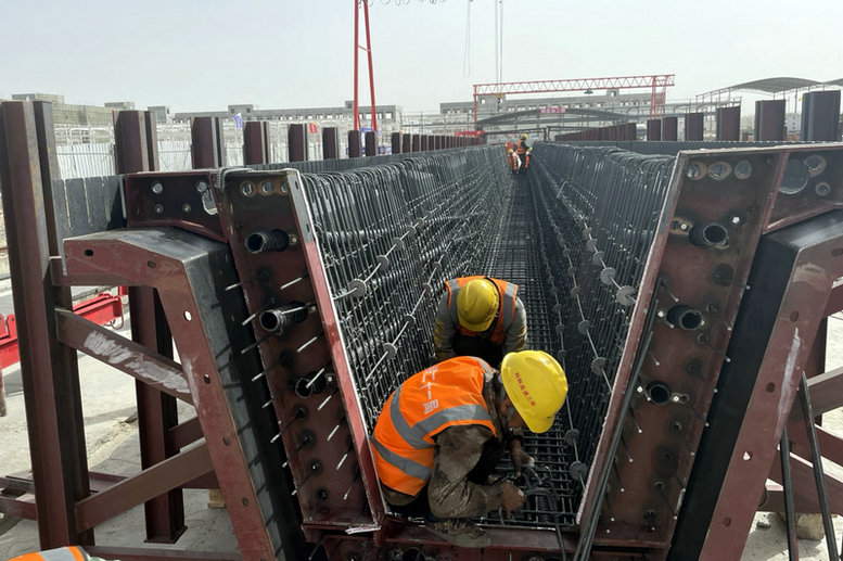 本次完成澆筑的首片預(yù)制箱梁長(zhǎng)30米,高1.6米?,F(xiàn)場(chǎng)負(fù)責(zé)人表示,為確保首片預(yù)制梁順利澆筑完成,中鐵二十一局項(xiàng)目部精心組織安排,在預(yù)制過程中加強(qiáng)質(zhì)量控制,確保梁體澆筑安全優(yōu)質(zhì)。首片預(yù)制梁成功澆筑,為橋體上部結(jié)構(gòu)施工快速推進(jìn)提供了保障。