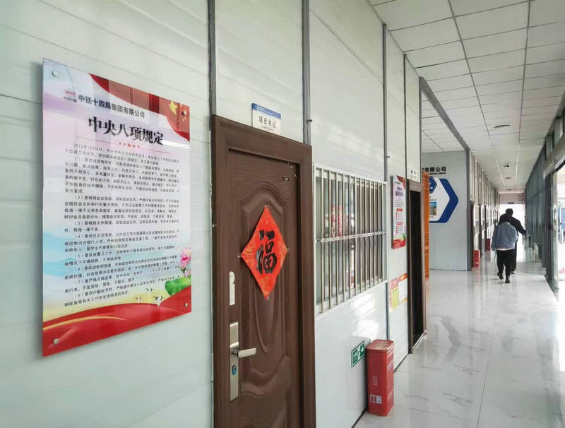 項(xiàng)目部黨政主管門(mén)口張貼著“中央八項(xiàng)規(guī)定”、“中國(guó)共產(chǎn)黨廉潔自律準(zhǔn)則”等有關(guān)警示標(biāo)牌,起到居安思危、警鐘長(zhǎng)鳴的警示作用