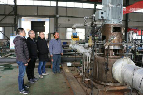 4、中鐵十八局集團(tuán)物貿(mào)公司黨委副書(shū)記秦立強(qiáng)、涿州水泵廠(chǎng)廠(chǎng)長(zhǎng)李紅軍和上海汽輪機(jī)廠(chǎng)物資采購(gòu)部徐歡歡部長(zhǎng)、中核集團(tuán)CZEC公司王殿武教授等專(zhuān)家在中鐵十八局集團(tuán)涿州水泵廠(chǎng)見(jiàn)證國(guó)內(nèi)首臺(tái)核電MSR450-60立式疏水泵研發(fā)成功(付寶強(qiáng)攝)